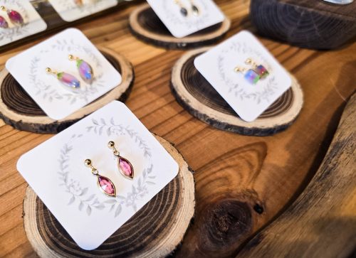 ピアスなどのアクセサリーは、店主自らが製作したオリジナル作品。