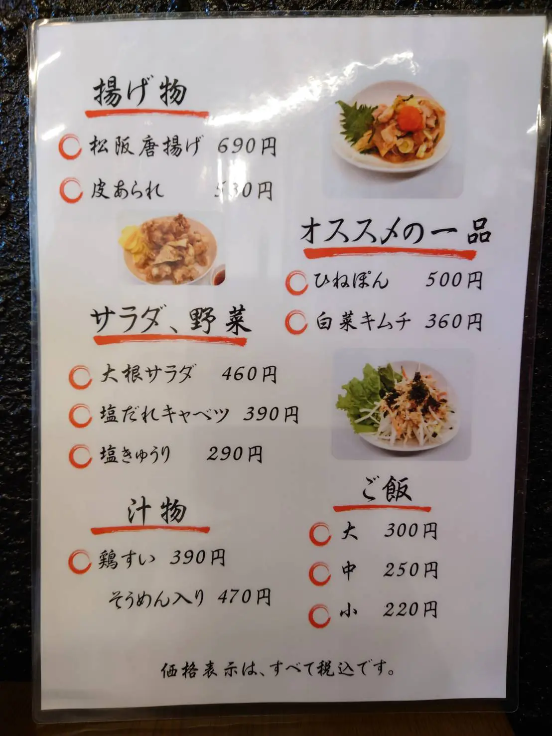 若鶏、ひね、くび、皮、はらみ、砂ずり、肝など部位ごとに用意されており、