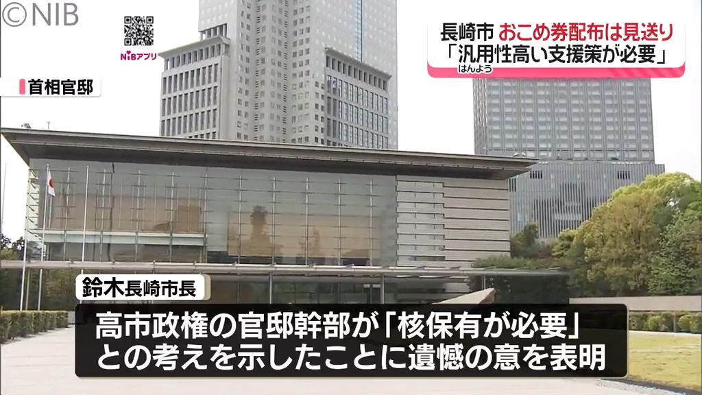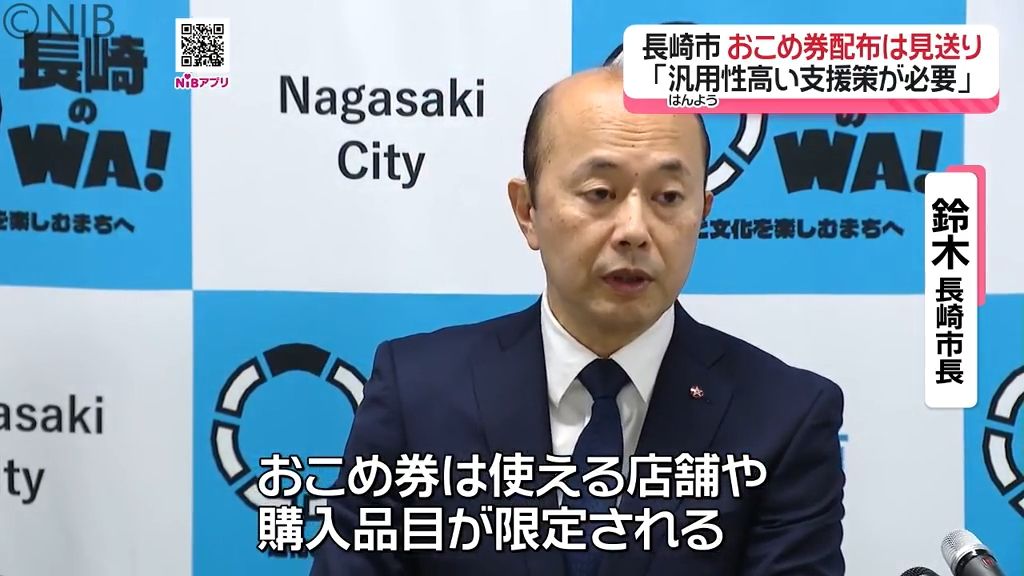 長崎市の鈴木市長は物価高対策として政府が推奨する「おこめ券」は配布しない考えを示しました。