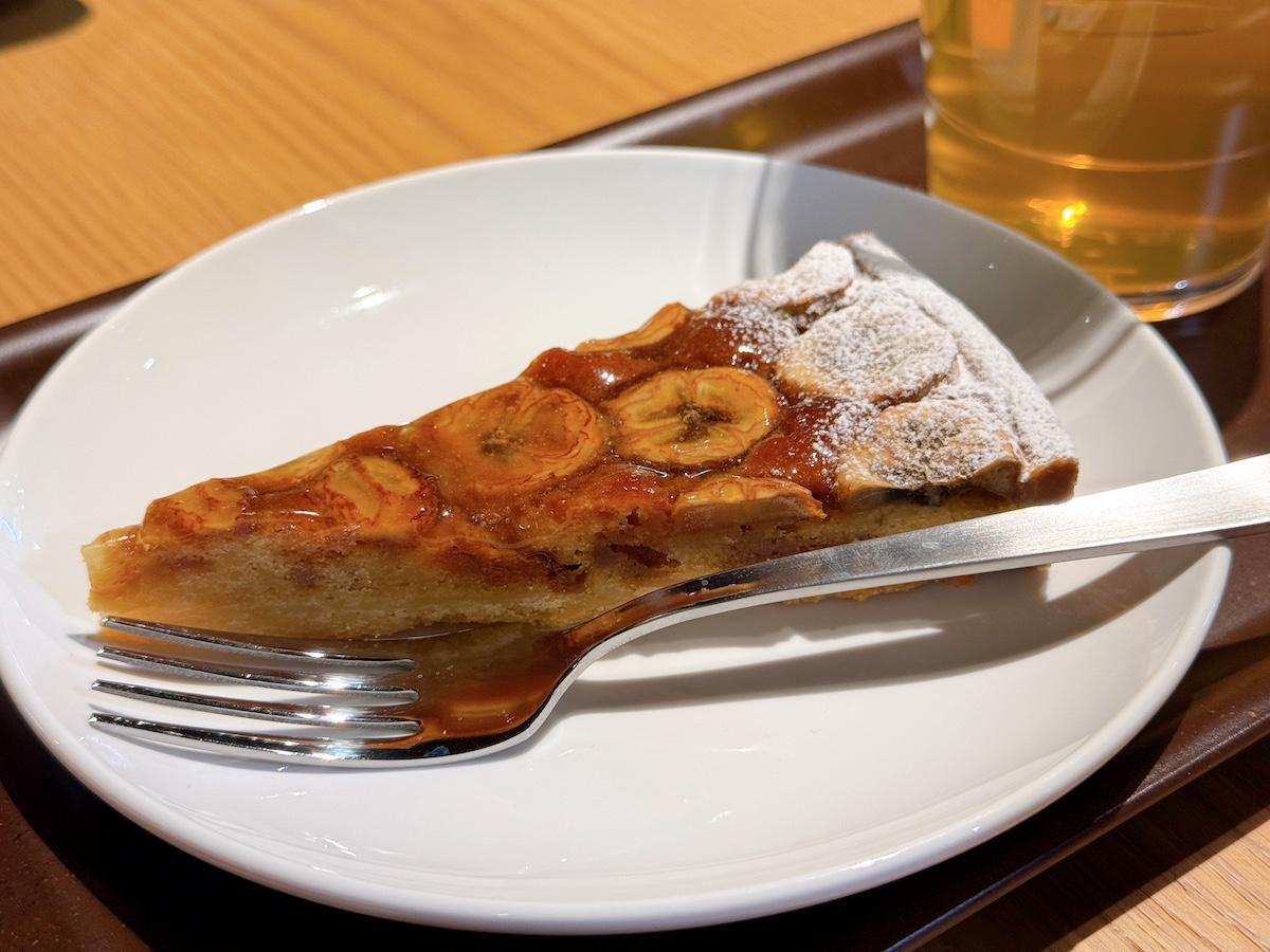 次に『ピーチ トランクイリティ』×『トルタ ディ バナナ』 です。穏やかなピーチとパイナップルの香りが広がるアイスティーに、濃厚なバナナタルトの組み合わせ。