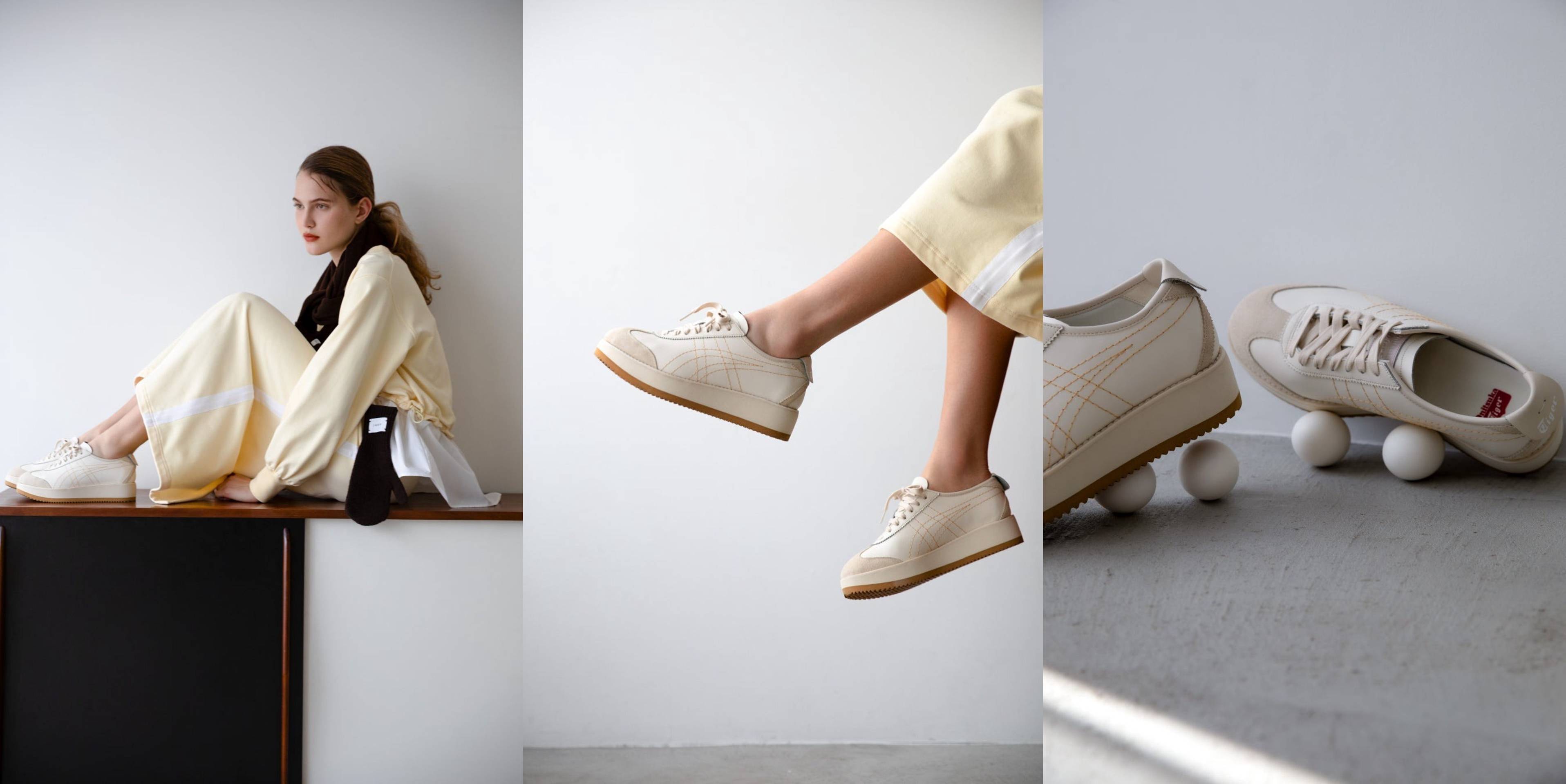 デイリーウェアブランド「エミ」と、日本発のファッションブランド「オニツカタイガー」による、新年にふさわしい別注モデルが登場する。今作は、アイボリーのスムースレザーとスウェードの異素材コンビに、ゴールドのハンドステッチ風ストライプをあしらい、クラフト感と上品さを演出。さらに、シュータンのピンクやインソールのレッドがアクセントとなり、春の訪れを感じさせる軽やかなデザインに仕上がっている。機能面では、ボリュームのある見た目に反して軽量なラバースポンジのアウターソールを採用し、Y字型の溝を施すことで優れた屈曲性とクッション性を実現。スタイルアップと快適な歩行を両立した、新年の足元を飾る特別な一足と言えるだろう。