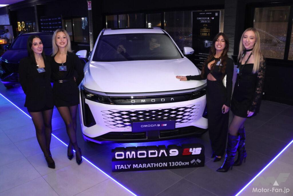 Omoda 9 SHS. At the Omoda/Jaecoo handling launch ceremony at Siena dealer “Ugo Scotti” in November 2025. The day bustled with about 200 invitees, mainly potential customers.