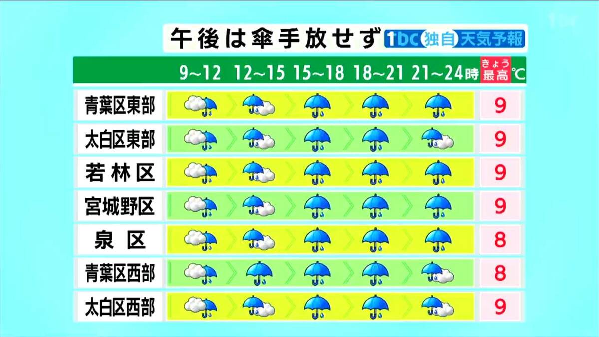■若林区:最高気温9℃ ■宮城野区:最高気温9℃