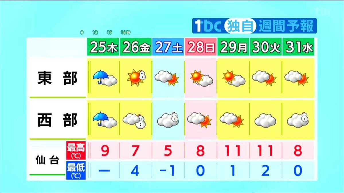 宮城県内 傘手放せないクリスマスに… 26日は荒天の仕事納めとなるか 暴風雪に警戒 tbc気象台