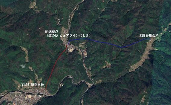 実証エリア(配送拠点とドローンの離着陸地点の候補地)