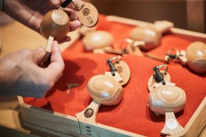 日本の昔話や伝説に登場する「打ち出の小槌」は不思議な力を持つ宝物で、縁起物や幸福の象徴として親しまれているモチーフ。だいこくさまの持ちものとしても知られ、客室のキーホルダーに使用されている。