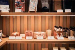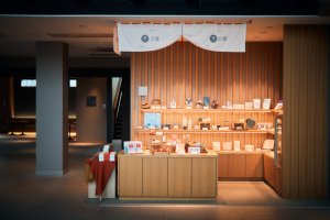 こだわりの窯元や工房から生まれた陶芸や染織などの工芸品から、恵まれた風土に育まれた食材まで多彩な品揃えのショップコーナー。山陰地方や島根の豊かな文化がお土産からも伝わってくる。
