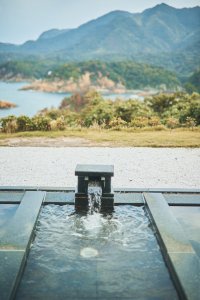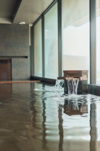 出雲ひのみさき温泉は、塩分濃度が高い“塩化物強塩泉”。塩のベールが身体を包み込み、湯冷めしにくいのが特徴。海をも思わせる塩泉を“清めの塩”に見立てた禊ぎ風呂でお詣り前の身体を芯から調えたい。