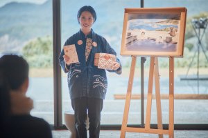 「手業のひととき」では、神楽面職人であり、神楽の伝統の守り人でもある「柿田勝郎工房」2代目柿田兼志氏より、現代まで受け継がれてきた歴史を学び、手ほどきを受けながら神楽面の絵付け体験ができる。※通常はチェックイン当日の13:30〜17:00に開催。