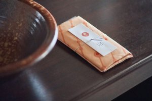 アメニティを包むオリジナルの風呂敷は、海を照らすおひさまの色。