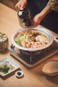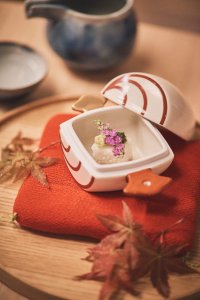 福神祭でふるまわれてきた歴史ある郷土料理の「うず煮鍋」は、御神酒の「八千矛」を煮切った風味豊かなお出汁で島根名産の大穴子や大山鶏をいただける。お鍋の後の締めの雑炊には、奈良時代より貢納品として朝廷へ納められていた希少な岩海苔「十六島(うっぷるい)海苔」の磯の香りを添えて。