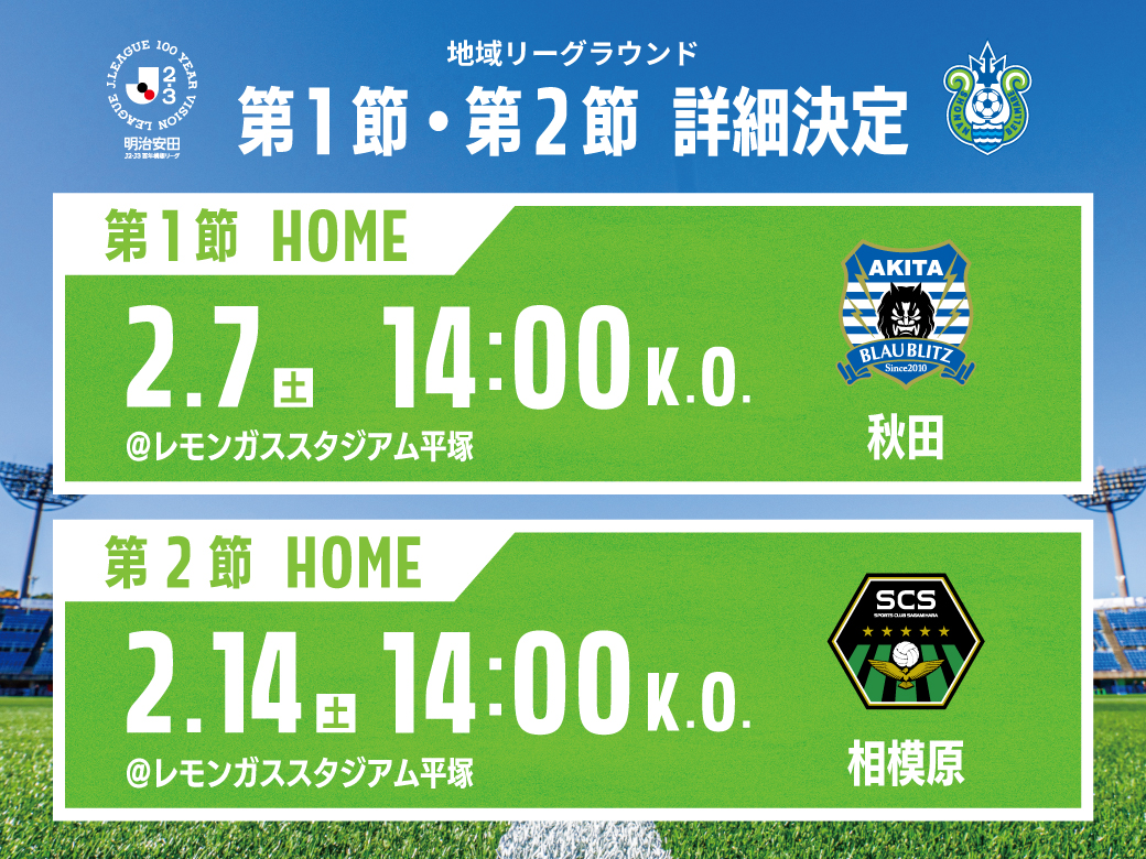 明治安田J2・J3百年構想リーグ 地域リーグラウンドの第1節・第2節の詳細が決定しましたのでお知らせいたします。
