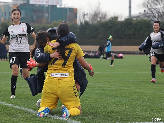 ここでヒロインとなったのは「1本目を止めて、INACの流れにしようと思っていた」と話す、I神戸の宮地絢花選手です。稲岡稟乃選手の助言を生かして、2本のキックを防ぎ、2-2(PK4-3)での勝利を引き寄せました。