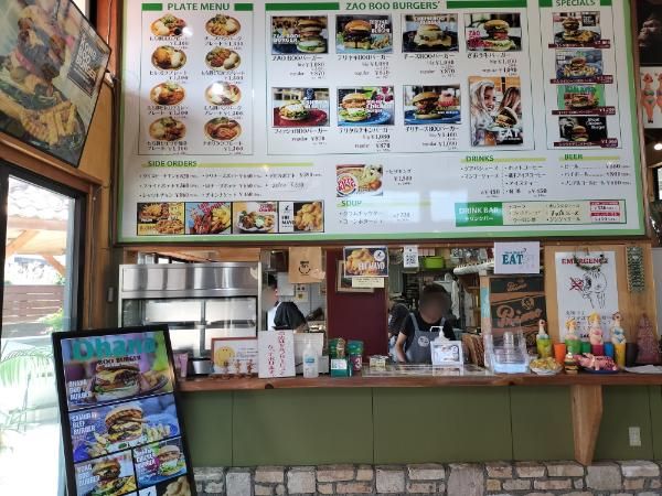ZAO BOO 宮城県刈田郡蔵王町遠刈田温泉仲町9-1 TEL 0224-34-3953< 営業時間 11:00~17:00(L.O.) 定休日 木曜日(祝日の場合は営業) https://zaobooburger.com/