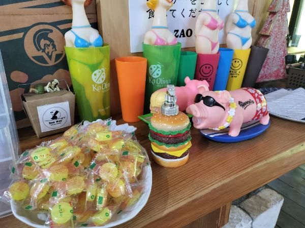 (お会計横で見つけた、南国の雰囲気の演出者たち♪)
