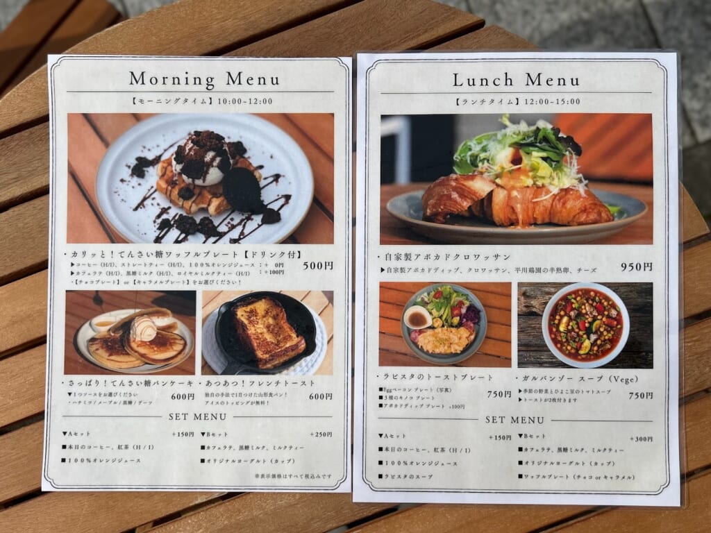 店内には1〜2名様用のテーブル席があり、外には開放感のあるテラス席も用意されています。1人でも入りやすい雰囲気なので、ふらっと気軽に立ち寄れるお店です♩