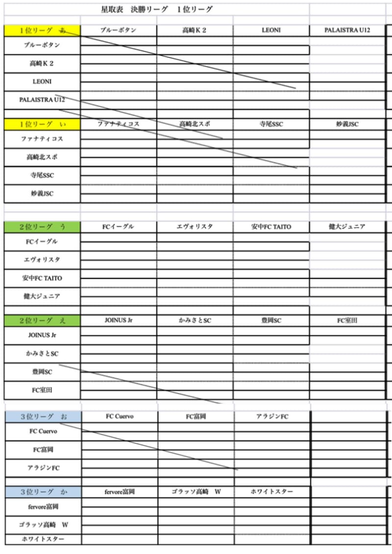 (デポ杯 13 位チームを振り分ける。1~8位を振り分け。