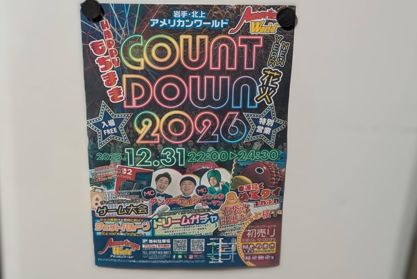 毎年恒例の「岩手・北上アメリカンワールドCOUNT DOWN 2026」の開催が決定しました! 2025年12月31日(水)22時から24時30分はアメリカンワールドは特別営業! 皆で新年をお祝いするために集合しましょう♪
