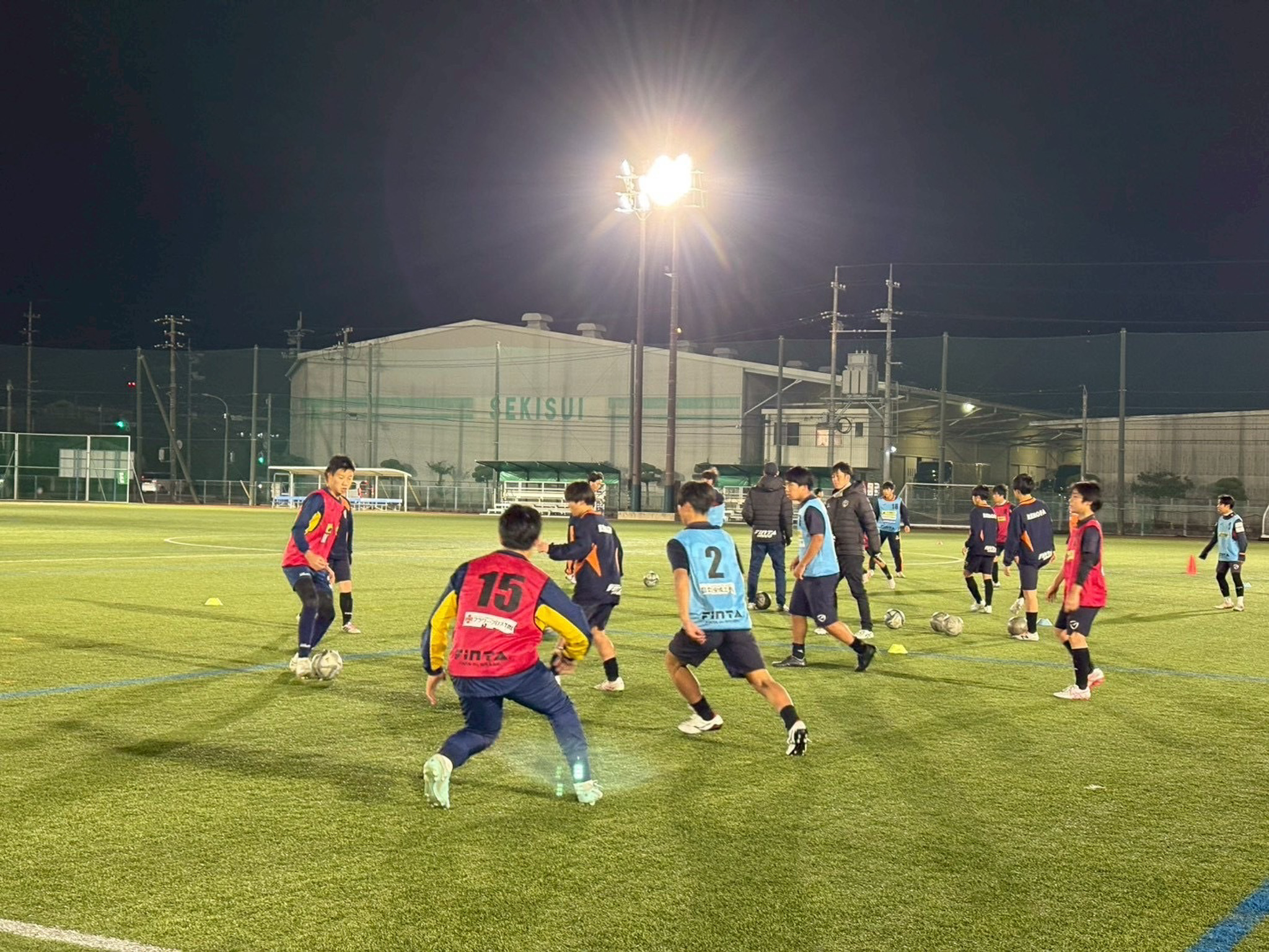 レノファ山口FC U15や高川学園中学校サッカー部と連日トレーニングを実施。