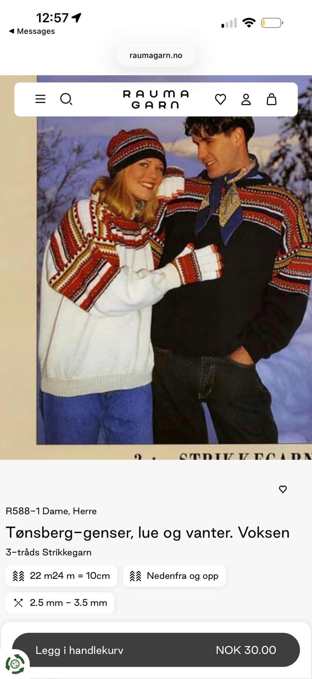 パターン: https://www.raumagarn.no/produkt/oppskrifter/r588-tonsberg-genser-lue-og-vanter (3枚目の画像も)