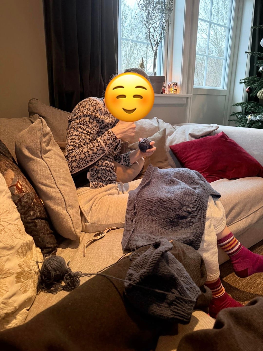 私の親友の双子は、彼女が15時間の仕事を解き明かすのを手伝う必要さえありました – 写真は彼女の母親(世界最高の贈り物の一人)からの2022年の快適でスポーティなクリスマスセーターと、私が彼女にもらったダーンタフバーモントオスロスキーブーツソックスをモデル化しています – 5番目の画像で、クリスマスに全員が集まったとき。こういった交流会では編み物も盛んに行われることが多いので、たくさんのセーターを着込んだ本場ノルウェーのおじいちゃんやおばちゃんがヒントを教えてくれます。