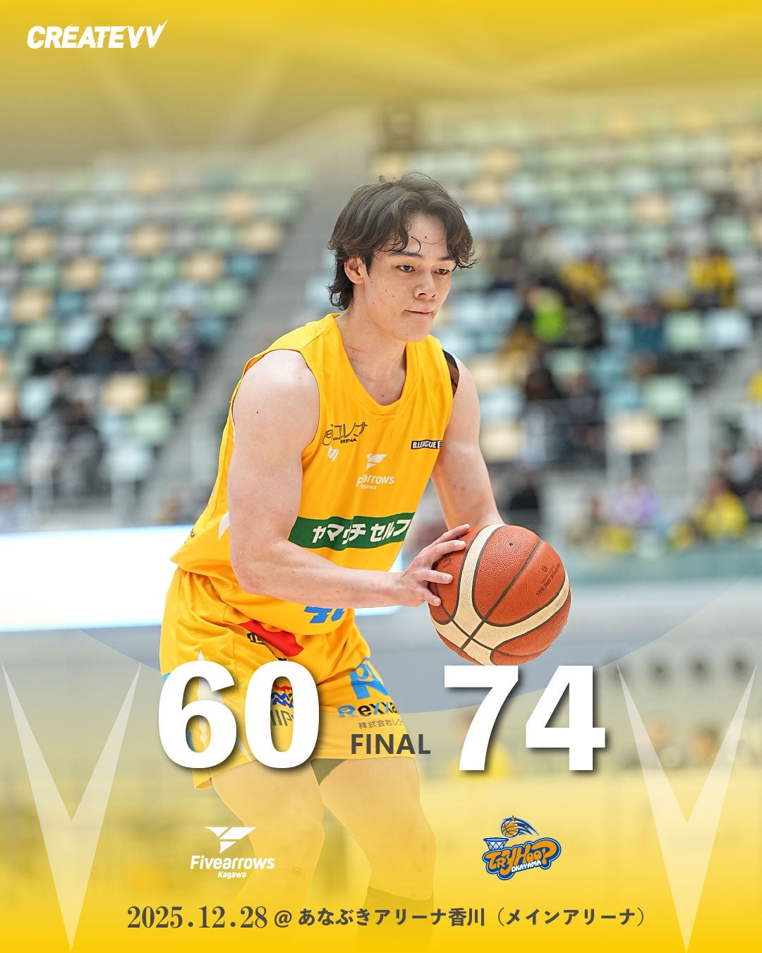 GAME REPORT B3 REGULARSEASON 2025-26 第14節【GAME2】 HOME ■日時:2025年12月28日(日) 15:00 TIP OFF ■会場:あなぶきアリーナ香川(メイン) 香川ファイブアローズ 60(16-13-23-8) トライフープ岡山 74(25-24-12-13) BOX SCORE・PLAY BY PLAY 籔内幸樹HC コメント 根來新之助選手 コメント 今林萌選手 コメント Kagawa 香川 香川県