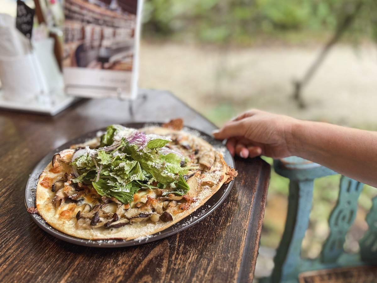 大分県はきのこの産地ということで、「大分キノコとチーズピザ」(1200円)を注文したのですが、すごく本格的! 焼き立てできのこの旨味も濃厚、サラダもたっぷりで食べ応えバツグンでした。