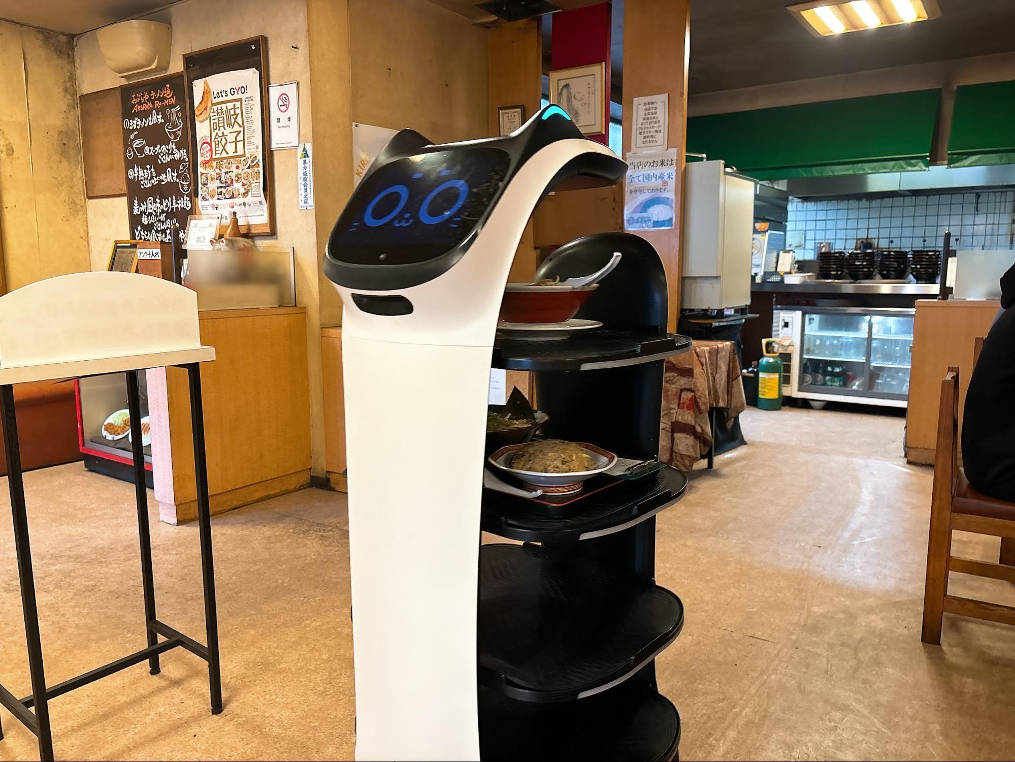 店内を見渡すと、猫型の配膳ロボットがゆっくり動き回っていて、思わず目で追ってしまいました。