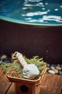 素戔嗚尊が妻をめとった喜びを詠んだ歌“八雲立つ 出雲八重垣 妻込めに 八重垣造る その八重垣を”でも知られる「八重垣神社」は、玉造温泉街から車で約15程の縁結びの聖地。「界 玉造」では期間限定で神話のふるさとならではの開運旅「八重垣神社開運プラン」を開催。古来より出雲で神々が宿る草として神事に用いられてきた「真菰」は浄化作用によって邪気を祓い、出雲大社の注連縄も使用され、珍重されてきた植物。開運プランでは、この神聖な真菰を使用したオリジナルバスセットで参拝前の湯浴みをし、神社でのお詣りや祈祷の準備を調えてくれる。