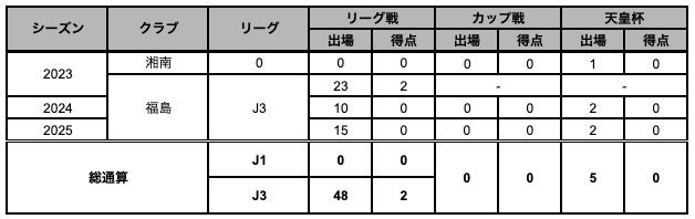 【サッカー歴】ビアンコーネ福島 U-12→ビアンコーネ福島 U-15→湘南ベルマーレ U-18→早稲⽥⼤→湘南ベルマーレ→福島ユナイテッド FC