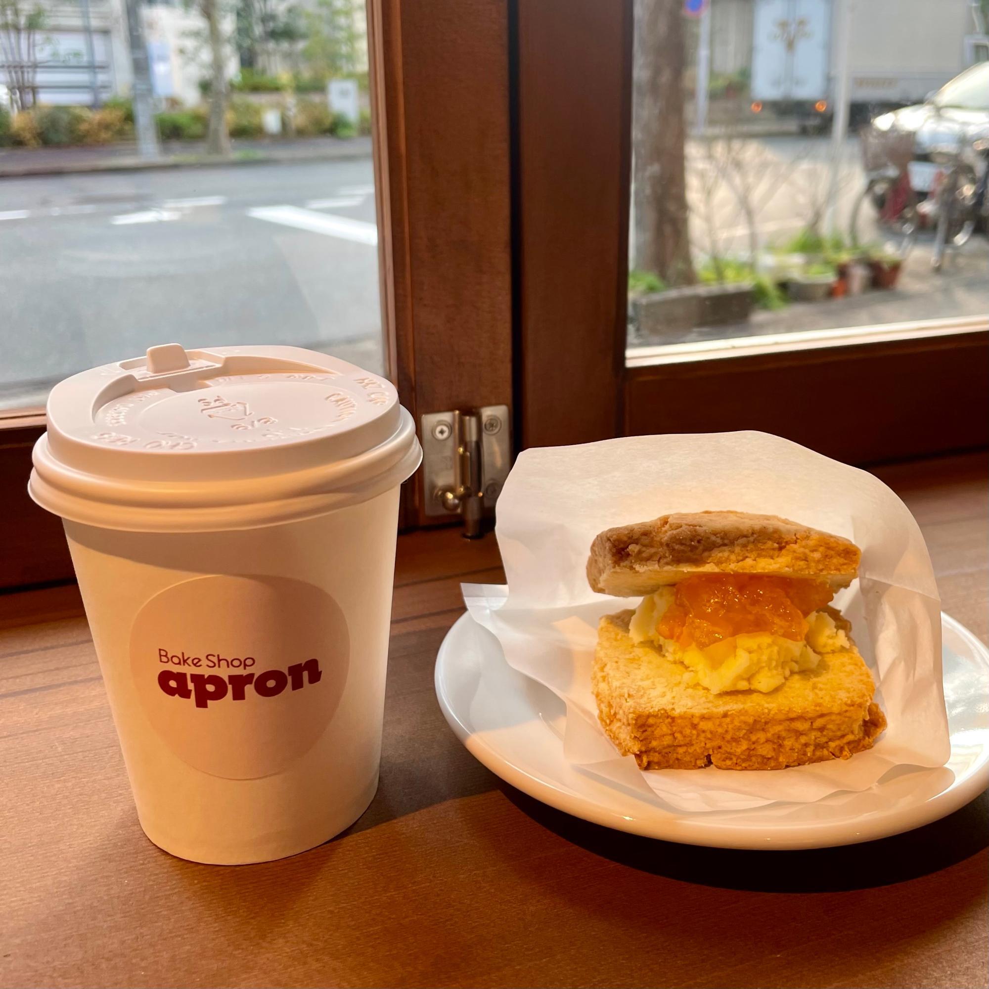 イートインスペースでスコーンサンドとコーヒーをいただきました。