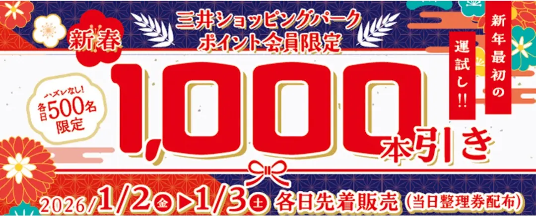 最大5万円分のお買物券&お食事券が当たる「新春1,000本引き」で、2026年最初の運試しをしてくださいね♪