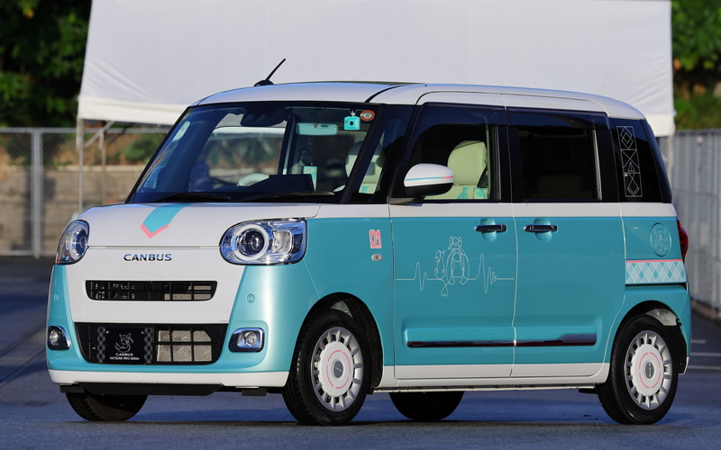 この「ムーヴキャンバス 初音ミク エディション」はバーチャルシンガー「初音ミク」とのタイアップにより、ダイハツのムーヴキャンバス(LA850/860S)専用のドレスアップパーツとして開発されたもの。2014年に北海道限定車として「雪ミク×ミラ ココア」、続いて2016年に「雪ミク×キャスト アクティバ」を全国販売。以降「DBC×初音ミク」のコラボモデルの企画は続き、今回で5代目となる。