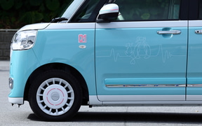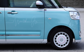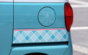ちなみに、ムーヴキャンバスはカラーバリエーションも豊富で、メーカー自らが「アナザースタイル」と呼ばれるスタイルバリエーションも用意するなど、高いデザイン性と幅広い選択肢を持つモデルだ。そのデザインの幅と世界観をさらに広げるアイテムとして登場した「ミクキャンバス2」は、ダイハツ純正アクセサリーという位置付けではないものの、初音ミクとダイハツ車の歴代コラボレーションモデルをこれまで手がけてきたDBCならではの仕上がりとなっている。初音ミクファン同士なら伝わるこだわりポイントを随所に散りばめながらも、全体的にはさりげないデザインなので知らない人にとっては初音ミクと気づかず、ファンシーなデザインのクルマとして普段使いしやすい仕上がりとなっている。
