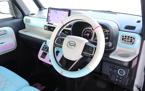 内外装ともに、随所にこだわりを見せながらもシンプルで控えめなデザインの「ムーヴキャンバス 初音ミク エディション」。「このデザインをベースにさらに自分好みの1台に仕上げたいので、あえてスペースを空けてほしい」とのファンからのリクエストもあったそうだ