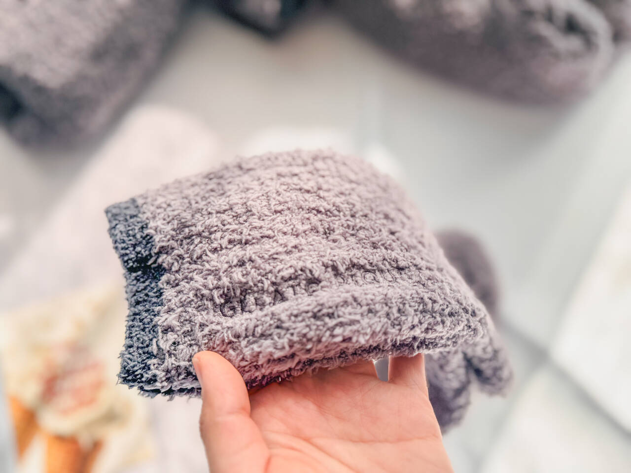 さらにもこもこの靴下もセットに含まれているので、足元までぬくもりをキープできるのは嬉しいポイント。我が家は乳児がまだまだ夜泣きをするため、深夜の寒い中、部屋を行ったり来たりすることもしばしば。そんな、日々頑張るママにもとってもおすすめです。
