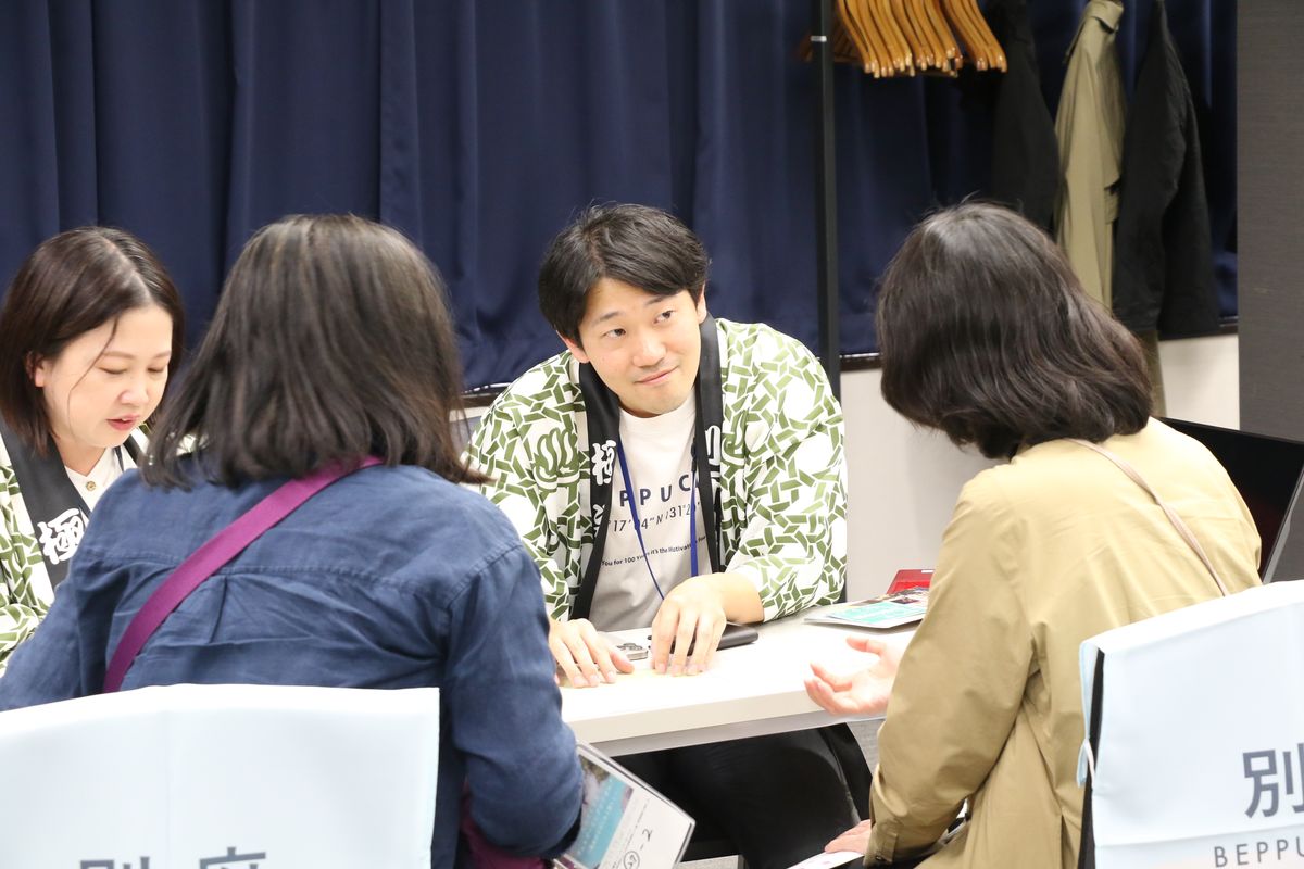 後半は「推し温泉プレゼンバトル!」というテーマのもと、3人がお気に入りの温泉を紹介。その後は市町村と団体、参加者とのフリー交流タイム、個別相談会が開かれました。少しだけ参加者の方に話を聞いてきたので、ここで紹介させてください。