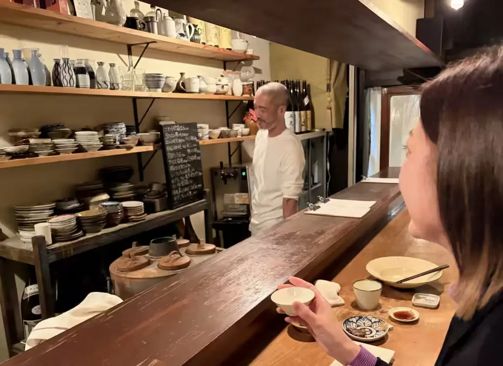 〝日本酒ガール〟松浦すみれさん(右)が通う「そば 酒 まつもと」。寡黙な店主が営む燗酒の名店だ