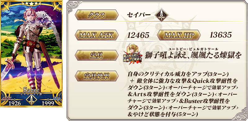 ※「★5(SSR)リチャードⅠ世」の宝具は再臨段階によって演出が変化いたします。