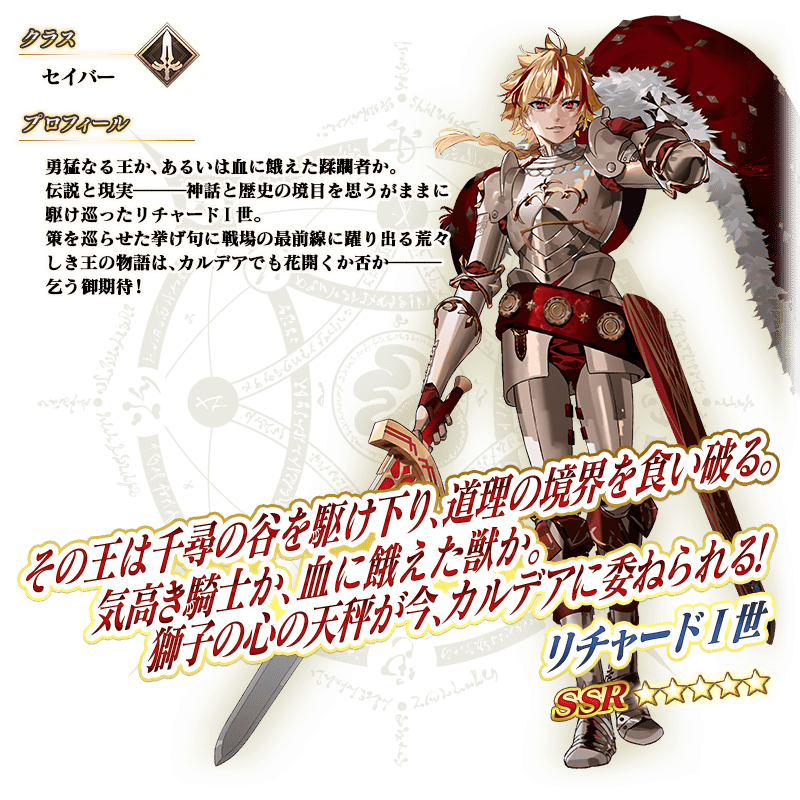 「★5(SSR)リチャードⅠ世」をサポートメンバーに迎え、期間限定のクエストに挑むことができます!