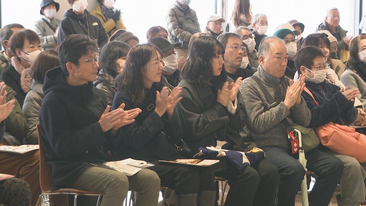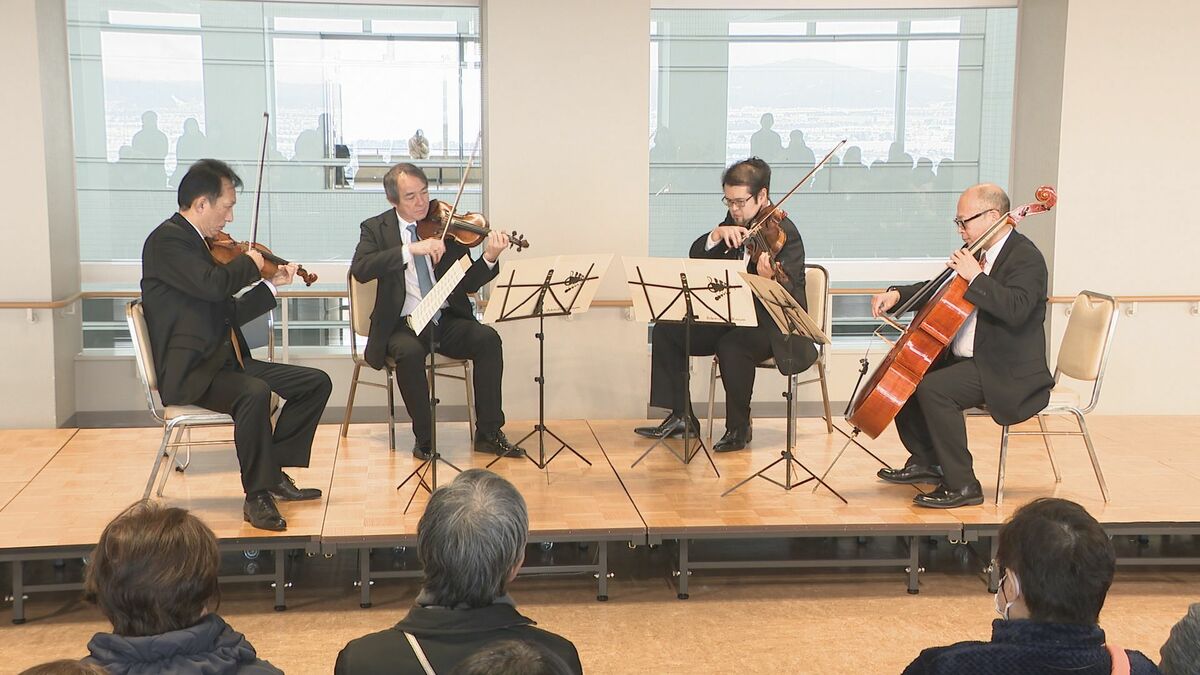 ミニコンサートは、石川県が2006年から毎年、正月に合わせて無料で開いていて、3日は、オーケストラ・アンサンブル金沢からバイオリンとビオラ、チェロを担当するメンバー4人が招かれました。4人は、元日に能登半島地震の追悼式でも演奏したベートーベンの「13番カルテット5楽章」などクラシックの名曲を弦楽四重奏で披露しました。