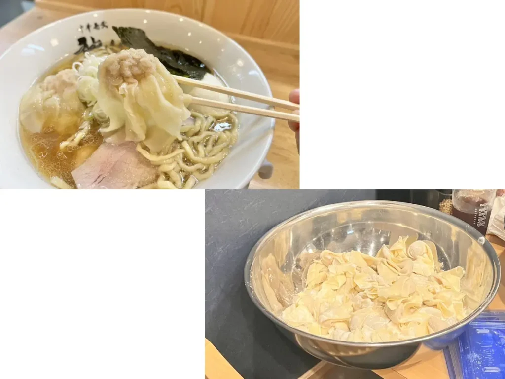 一般的にラーメン店で提供されるワンタンは、既製品の皮を使ったものが多い中、こちらでは皮からすべて手作り!極限まで薄くのばされ、茹でるとその皮は、舌の上でとろけるような食感に仕上がります。ひとくち頬張れば、まず感じるのは、ふわりと立ち上る生姜の香り。そして、たっぷり詰め込まれた餡の旨味が、じゅわっと口いっぱいに広がっていき何個でも食べられちゃう美味しさと満足感!
