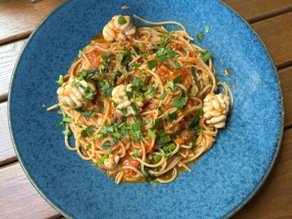 飲めるパンケーキと、パスタが人気のお店ということで、まずはパスタを注文。