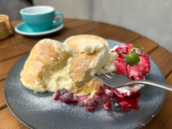 本当にふんわりしていて、生クリームと一緒に飲み込めるようなパンケーキでした!