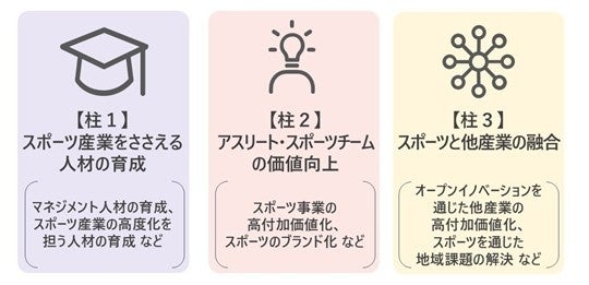 「AiSIAアクセラレーションプログラム」は、柱2「アスリート・スポーツチームの価値向上」及び柱3「スポーツと他産業の融合」に関連する取組。