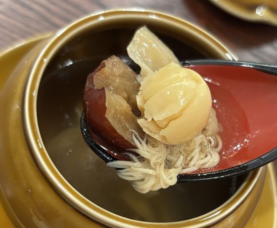 も〜最高! 身体が温まって元気もりもりになるスープ。贅沢な組み合わせです! スープには、他にも蓮の実、ナツメ、山伏茸が入っていました。楊貴妃が好んで食べたといわれるナツメは、美肌にいいんですよねー♪