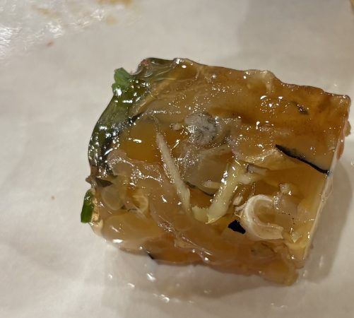 自然な煮こごり。ぷるっとしてフグ好きの私は嬉しかったです。