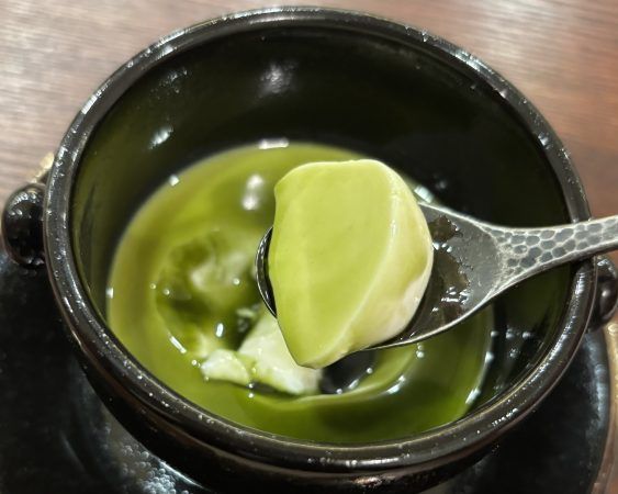 デザートは、抹茶のムース。美しい抹茶色。