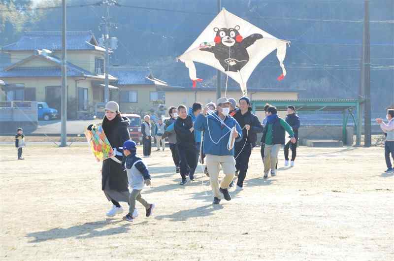 地元有志らでつくる保存会が、次世代に伝統をつなごうと毎年開く。熊本県伝統的工芸品の「小川凧」は、正方形の和紙と2本の竹ひごで作られ、1本の糸で揚げるシンプルさが特徴。事前申し込み不要。