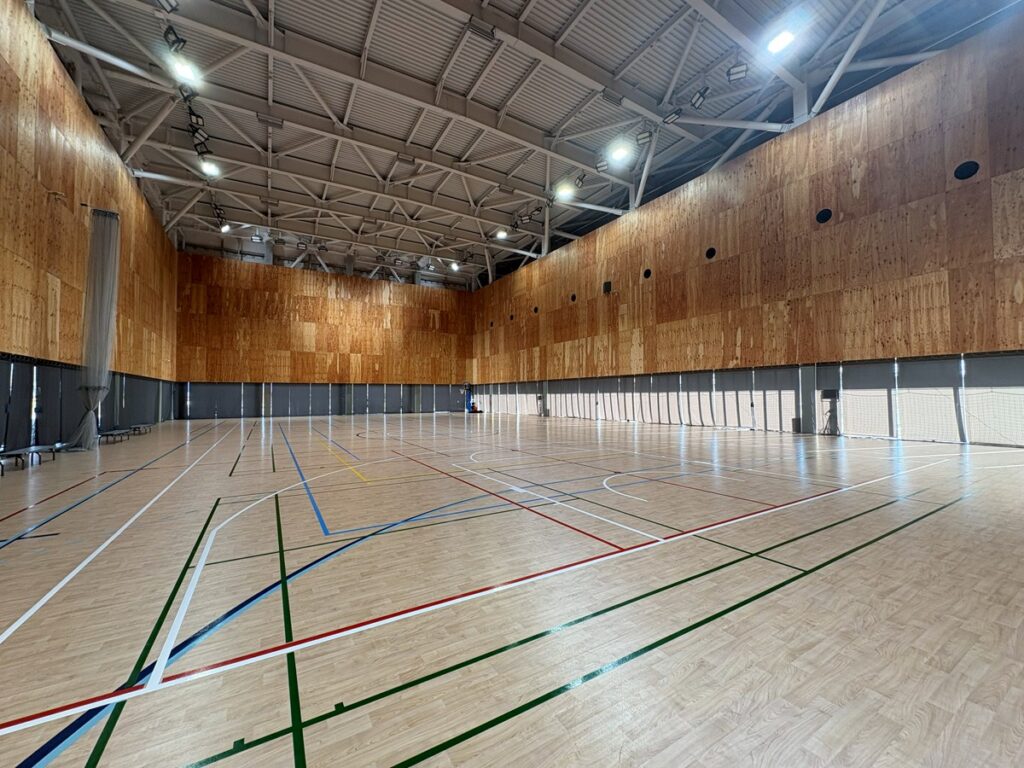 サブアリーナの足元がこんなに開放的なつくりにできるのは、ヨリドマの屋根架構によってメインアリーナと一体化されているからだ